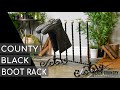 Made in robust iron this black freestanding boot rack is ideally placed in your porch area or at the front door. A charmingly traditional yet functional storage solution, the arms will easily support up to three pairs of wellingtons. The addition of classic scroll work and decorative ceramic finials ensures that the rack is as essential as it is stylish.